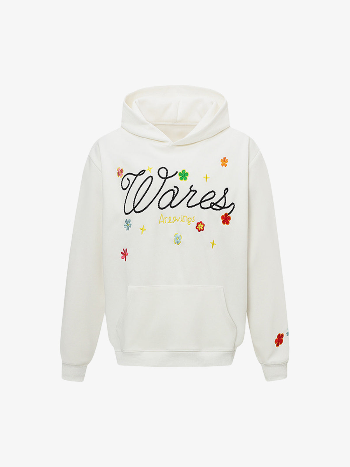 • Design Elements: Colorful floral embroidery, playful script text, decorative stars