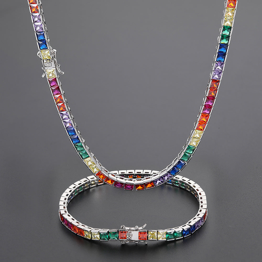 Men's Colorful Square Zirconia Tennis Necklace #CHA033