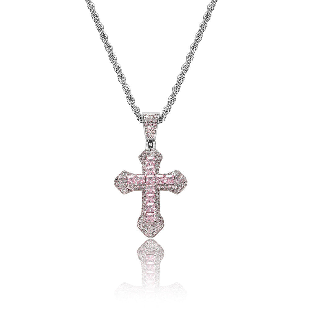 Men's Cross Colored Zirconia Pendant Necklace
