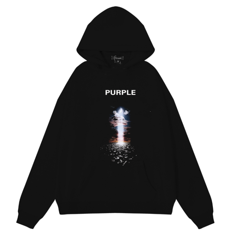 Purple Brand Logo Pattern Printed Hoodie