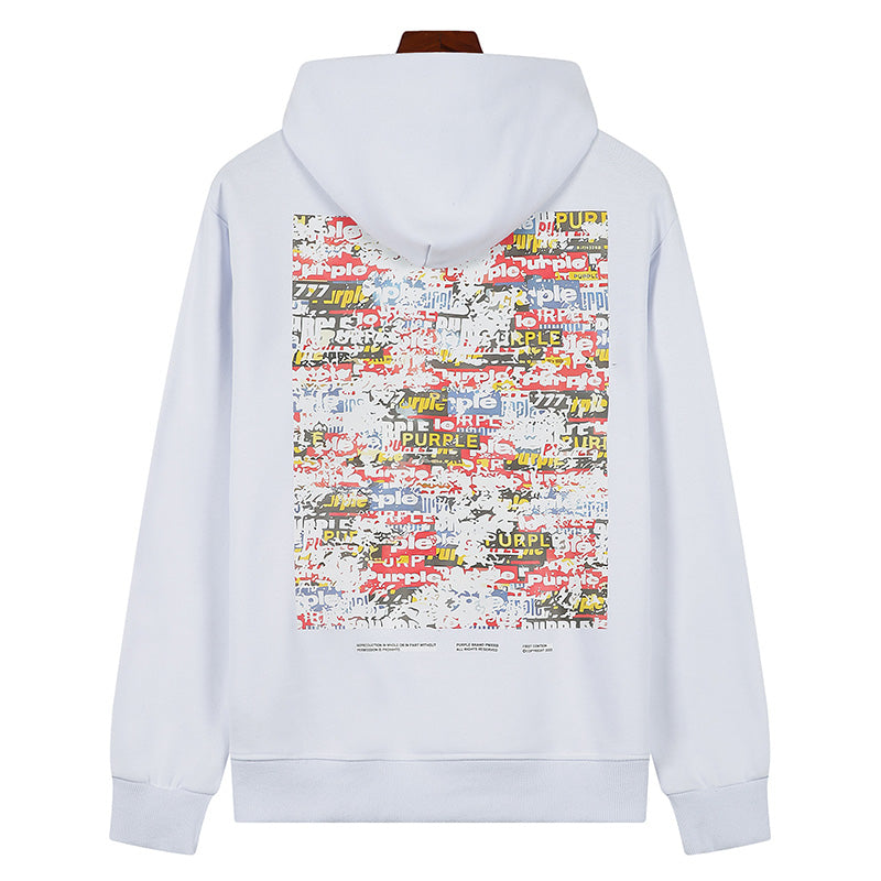 Purple Brand Logo Pattern Printed Hoodie