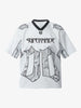 • Design Elements: Snake Skin Print, Bold "REACH HIGH" Lettering, Shoulder Pads Design